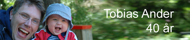 Den 31:a mars 1975 föddes Tobias och det ska firas! Det är mycket roligare med kalas i sommarskrud än i töslask så därför kommer födelsedagen att firas den 13:e juni 2015 (14- sent) hemma hos oss utanför Fjugesta (se kartsidan för vägbeskrivning).